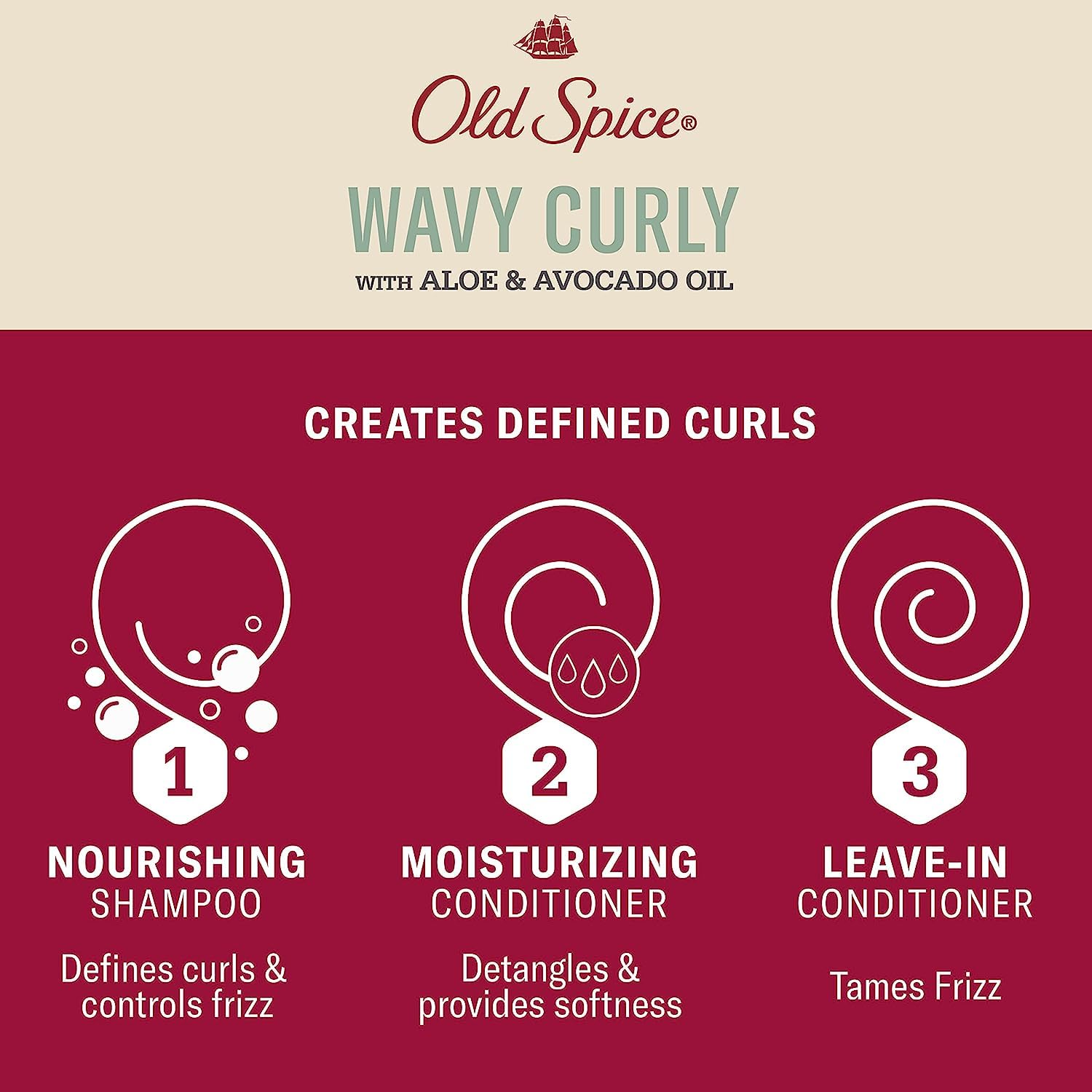 Old Spice Shampoo, Conditioner and Leave-in Conditioner Set for Men, Wavy Curly Hair Regimen Bundle